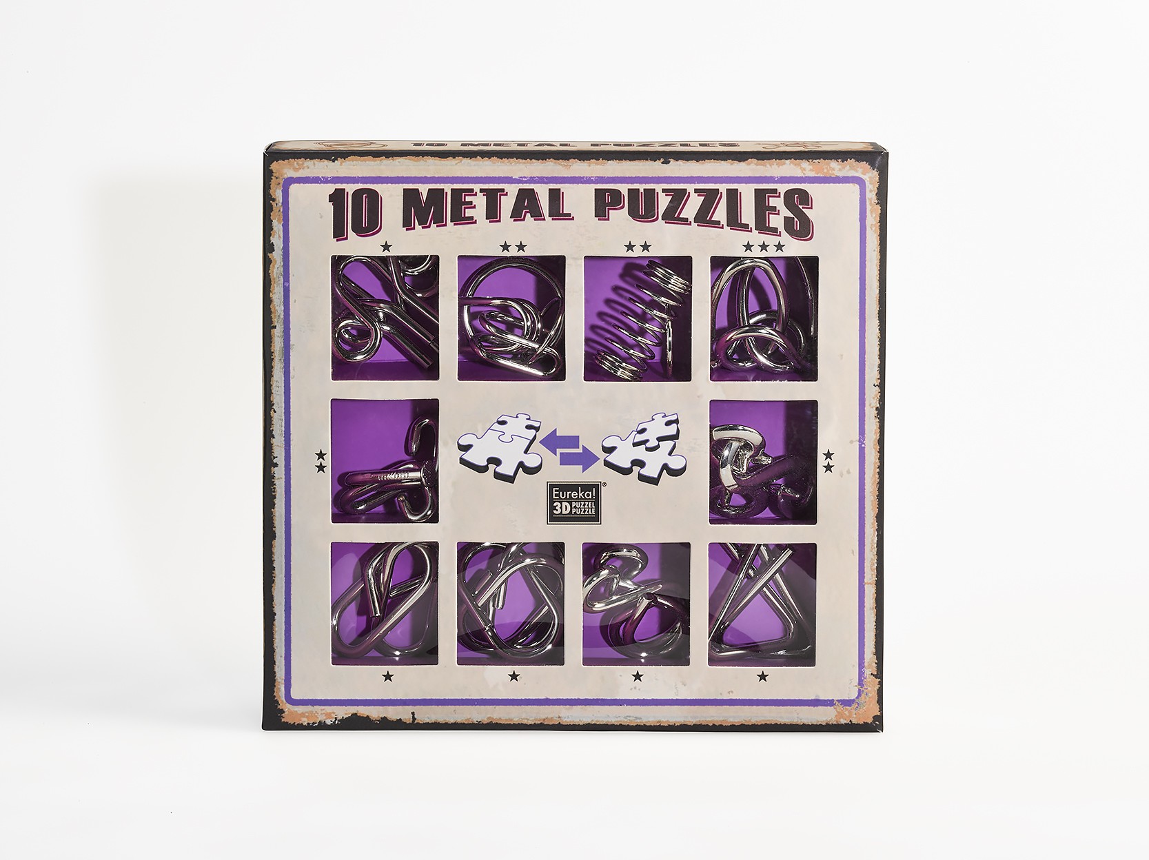 Haal de onderdelen uit elkaar en breng ze terug naar de beginpositie. 1x 3 sterren*** moeilijkheidsgraad. 4x 2 sterren** moeilijkheidsgraad. 5x 1 ster* moeilijkheidsgraad. Elke set bevat een spiraalpuzzel, spijkerpuzzel, kleine gegoten puzzel, enz.