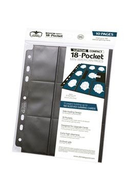 Hoogwaardige, dubbelzijdige pocketpagina's (18 pockets, 9 pockets elk aan de voor- en achterkant), die in bijna elke compacte D-ringband passen, dankzij de dubbel versterkte 7-gaats strip. Elke verpakking bevat 10 pagina's voor het opbergen en dragen van minimaal 180 Mini American-formaat kaarten (18 per pagina) in hoezen. - Ideaal voor Damage en Upgrade Cards van X-Wing Miniatures Game - Zij-laadontwerp - Dubbel versterkte 7-gaats strip - Extra duurzaam basismateriaal met semi-transparante middenlaag - 10 pagina's met minimaal 180 gesleevede kaarten - 9-Pocket Compact Pages met dubbel pagina-ontwerp - Past in bijna elke compacte D-ringband - Extra hoge helderheid van de beschermfolie - Zuurvrij, geen PVC - Paginaformaat: ca. 214 x 172 mm Ideaal voor het Ultimate Guard Supreme Collector's Compact Album XenoSkin.