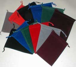 Deze velours dobbelsteenzakken kunnen worden gebruikt om zowel uw speldobbelstenen als andere tokens of glazen kralen in te bewaren. Elk wordt geleverd met een trekkoord om het open uiteinde af te sluiten.