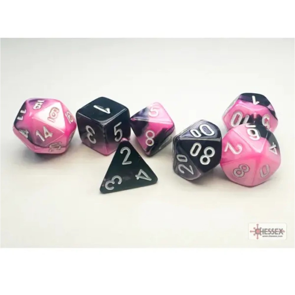 De Dice Set Roze/Zwart/Wit, met 7 levendige dobbelstenen, brengt een speelse en stijlvolle sfeer naar je speltafel. Het kleurenpalet van roze, zwart en wit voegt een vleugje flair toe aan elke worp, waardoor deze set perfect is voor bordspellen en dobbelspellen met een persoonlijk tintje.