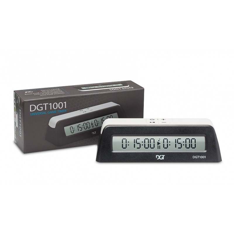 De DGT 1001 is een universele spel timer welke geschikt is voor school, club of om thuis te gebruiken. Het heeft een kristalheldere weergave, is zeer eenvoudig te gebruiken en zeer betaalbaar. De DGT 1001 beschikt over een countdown en up-count en heeft twee grote knoppen op de bovenste links en rechts om de timer te bedienen.