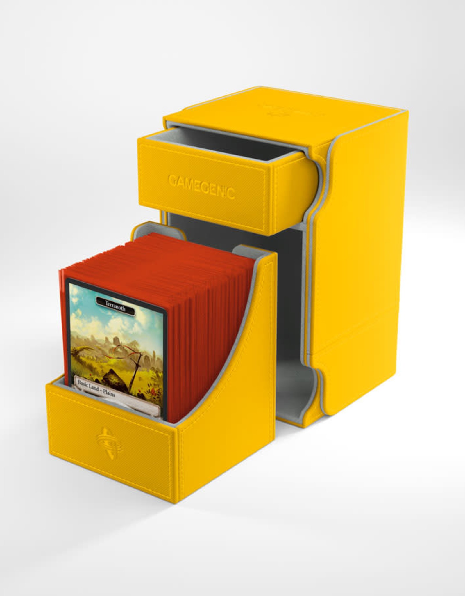 De Gamegenic Watchtower 100+ XL Yellow is de perfecte deckbox voor het veilig en georganiseerd bewaren van je kaarten. Deze box biedt ruimte voor meer dan 100 kaarten, inclusief sleeves, en is voorzie...