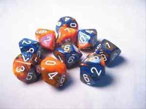 Set van 10d10 dobbelstenen. Deze set van tienzijdige dobbelstenen is ideaal voor elk World of Darkness-spel, van Vampire, Werewolf en Mage tot Changeling en Aberrant.