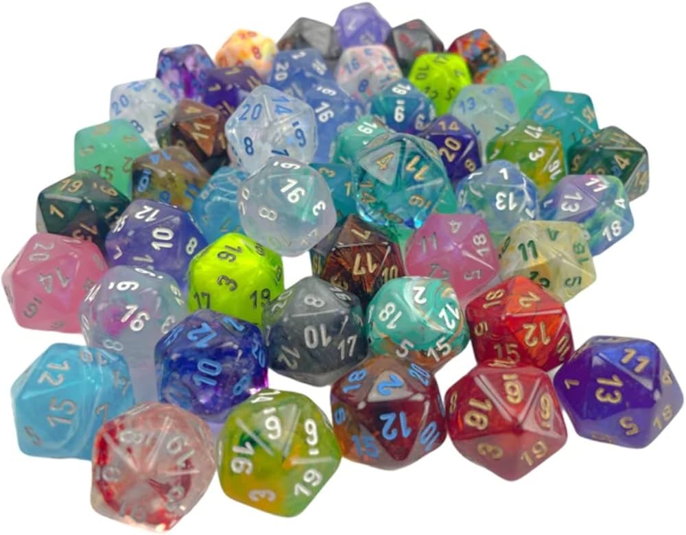 Dobbelstenen in veschillende kleuren met 20 zijden.