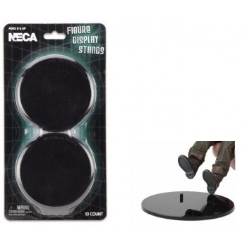 Deze set van 10 zwarte plastic display stands zijn compatibel met de meeste 6 inch - 8 inch grote actiefiguren. Ze hebben een diameter van 3,5 inch. De enkele pin kan in de rechter- of linkervoet van een figuur worden gestoken om te helpen bij het tentoonstellen of om dramatische poses te bereiken. Blisterverpakking.