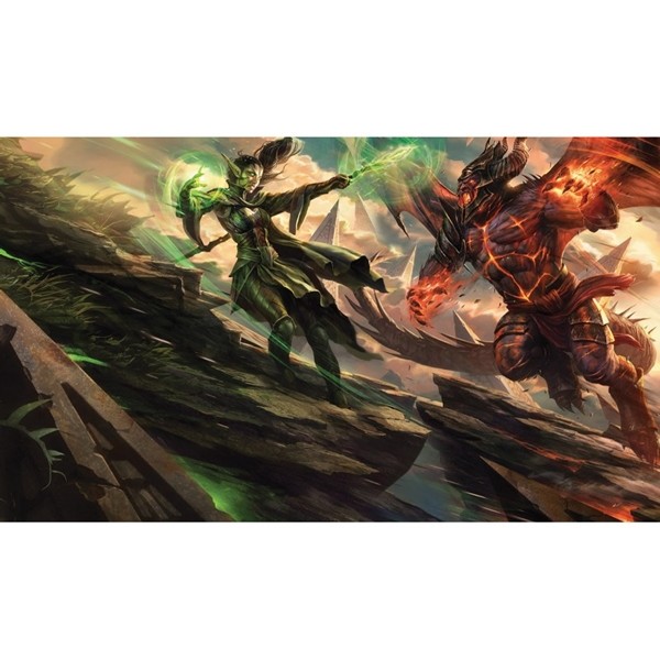 Deze Duel Playmat met opdruk van kunst uit de Duel Decks: Nissa vs. Ob Nixilis is het ideale speeloppervlak voor twee spelers tegelijk. Bescherm je kaarten en accessoires optimaal en in stijl tijdens ...