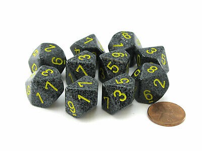 CHX25128 Urban Camo Speckled Dice met gele cijfers D10 Ongeveer 16 mm (5/8 inch) Set van 10 Chessex
