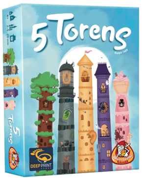 In 5 Torens ben je een meesterarchitect die de juiste kaarten kiest om de hoogste torens te bouwen. De kaarten uit het aanbod gaan naar de speler die het meeste biedt, maar let goed op! Omdat je slechts 1 toren van elk type toren kunt bouwen, beperk je je mogelijkheden als je te veel biedt.