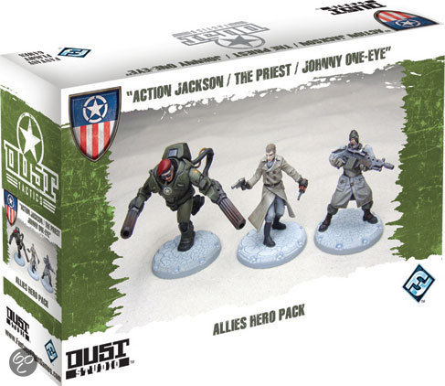 Though they each come from different backgrounds and though they each pursue their own methods, the famous warriors of the Allies Hero Pack all share a talent for wiping out Axis units. Action Jackson heads to war armored in a high-tech ASOCOM battle suit and equipped with two 60W Phaser Guns. The Priest prefers to operate up close and personal, where he's an expert with his dynamite, and Johnny One-Eye is the first Dust Tactics badass with the skill to prove it!