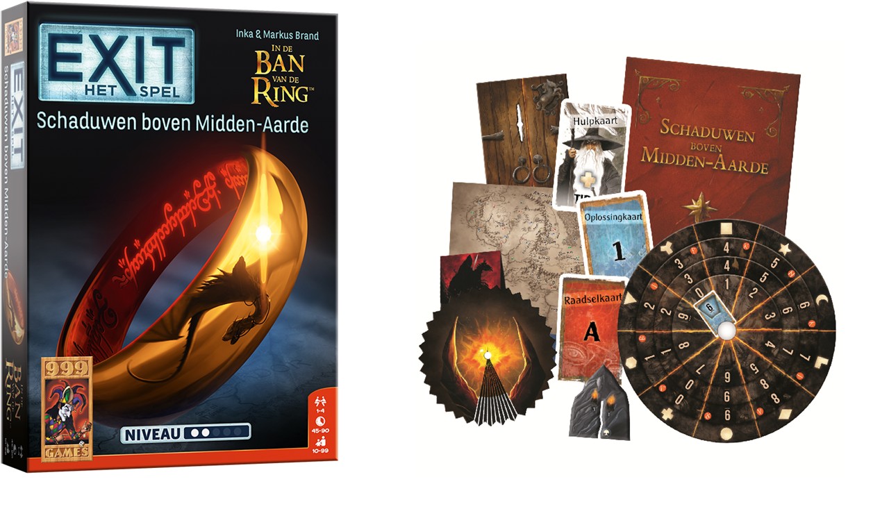 Exit: Schaduwen boven Midden-Aarde is gebaseerd op In de Ban van de Ring van J.R.R. Tolkien. Naast welbekende elementen zoals de decodeerschijf heeft dit nieuwe deel uit de Exit-serie iets nieuws: een doorlopend verhaal dat aan de hand van de raadsels wordt verteld. Zo komt de geschiedenis van de Ene Ring op een geheel nieuwe manier tot leven!