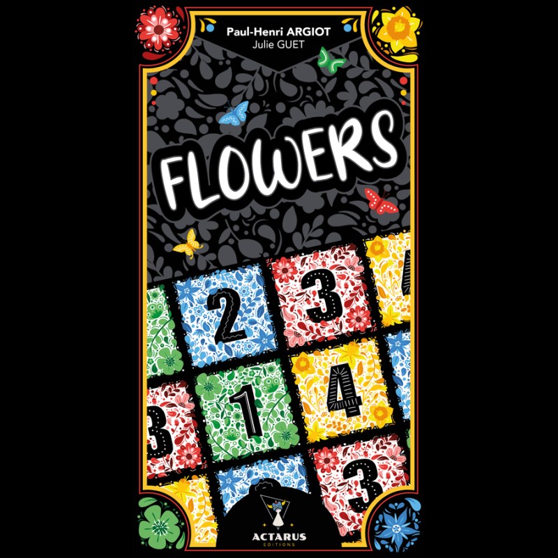 FLOWERS bestaat uit een stapel van 108 kaarten, met kaarten in vier kleuren en waarden 1-4. Elke spel...
