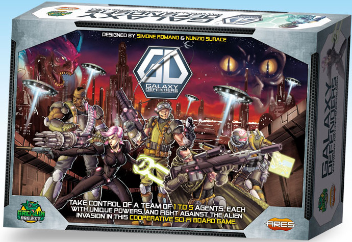 Galaxy Defenders is a sci-fi cooperative, tactical battle game in which 1-5 players fight together against an oncoming alien menace. Each player takes control of one or more agents with unique powers to defend the planet from the alien invasion. Gameplay revolves around a tactical combat system, using custom ten-sided dice. Each player sequentially plays his Agent turn and then one Aliens turn. Players carry out their turns [agent and aliens] in clockwise order until the last player finishes his Aliens turn. Once done, the game passes to the Event phase that will bring the players to the next round. Players may choose up to five agents: