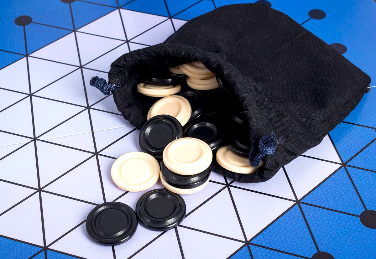 Abstract en vernieuwend spelconcept voor 2 spelers. Breng steeds 1 steen in het veld en schuif de stenen ervoor door. Maak je daarbij 4 op een rij, dan sla je alle stenen in die rij. Wie zorgt ervoor ...