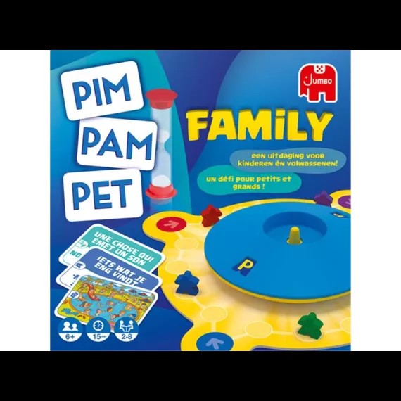 Pim Pam Pet is een gezinsvriendelijk competitief gezelschapsspel. Volwassenen en kinderen spelen samen maar door de regels hebben beiden evenveel kans om te winnen!