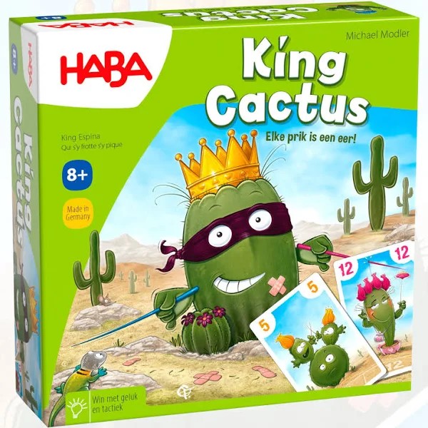 In dit spel verzamelen jullie rond de cactus koning. Elke prik van hem is een grote eer. Draai zijn stekels, speel je kaarten tactisch en scoor zo veel mogelijk slagen.De speler die aan het eind van het spel de meeste pleisters bezit, wint het spel.King Cactus is leuk familie HABA King Cactus.