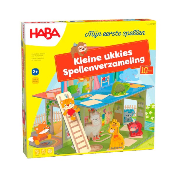 Onder begeleiding van Leni Lama hebben de jonge dieren Karla Koala, Aki Aap, Sheldon Schildpad en Greta Giraf een leuke dag. Zelfs het middagslaapje is hier kinderspel! In deze grote spellenverzameling zitten 10 verschillende spelideeën: van eenvoudige dobbel- en wedloopspellen tot ordeningspellen, memo- en cijferspellen en leuke meedoe- en bewegingsspellen. Met 3D-speelhuis en 5 grote houten figuren om vrij mee te spelen. Stimuleert het vertellen van verhalen en bevordert op speelse wijze de spraakontwikkeling.