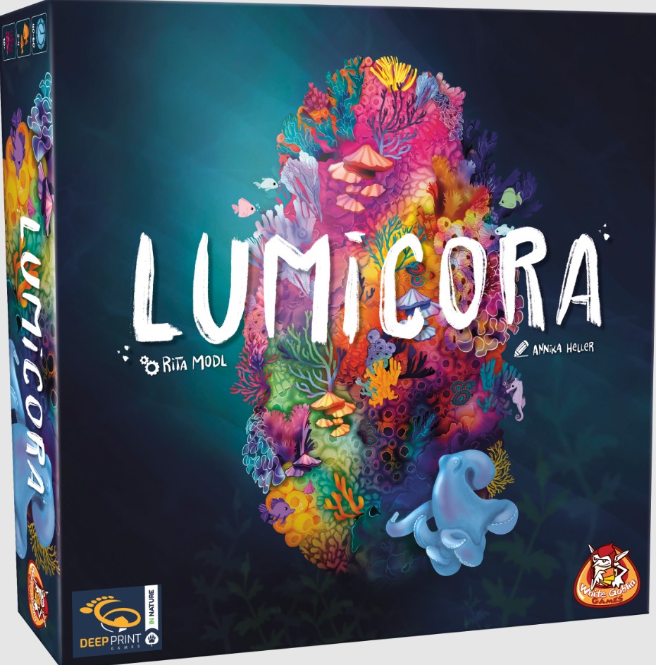 Duik in Lumicora en werk aan de wederopbouw van een koraalrif. Probeer een zo indrukwekkend mogelijk koraalrif te maken door je koraaltegels slim te plaatsen. Vergeet niet het aantal verschillende types koraal vakkundig uit te breiden en trek zoveel mogelijk zeedieren aan in de strijd om een bijzonder koraalrif te creëren. Lumicora is een 3D-tegellegspel dat draait om slimme planning en een juiste timing. De dubbelzijdige borden vergroten de herspeelbaarheid en vragen om verschillende strategieën. Én het logo op de doos geeft licht in het donker!