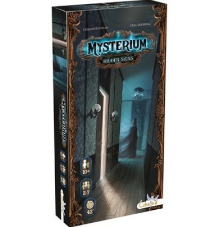 Deze Mysterium uitbreiding Hidden Signs bevat 7 nieuwe personages, 7 nieuwe locaties, 7 nieuwe objecten en 42 nieuwe visiekaarten.