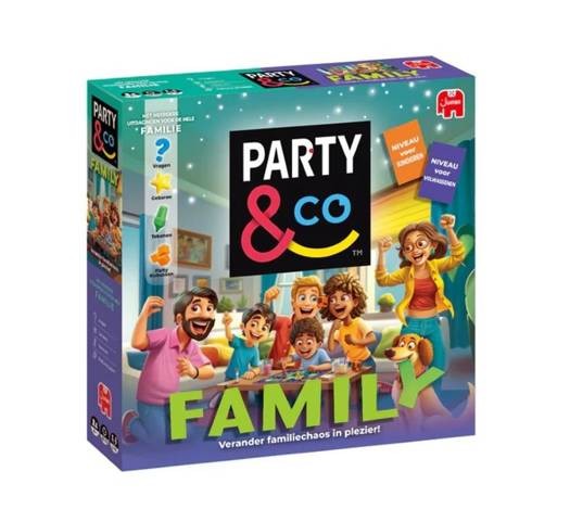 Party & Co. Family is het grappigste partyspel voor het hele gezin! Speel het spel en ga de taken aan in de categorieën tekenen, liplezen, gebarentaal, verboden woorden, en vraag en antwoord. Gooi de dobbelstenen en beweeg je speelstuk over het bord. Voltooi de taken en probeer de vragen correct te beantwoorden. Het team dat als eerste de finishlijn bereikt, wint het spel! Volwassenen kunnen gemakkelijk met kinderen spelen, omdat er twee verschillende moeilijkheidsniveaus in het spel zijn.