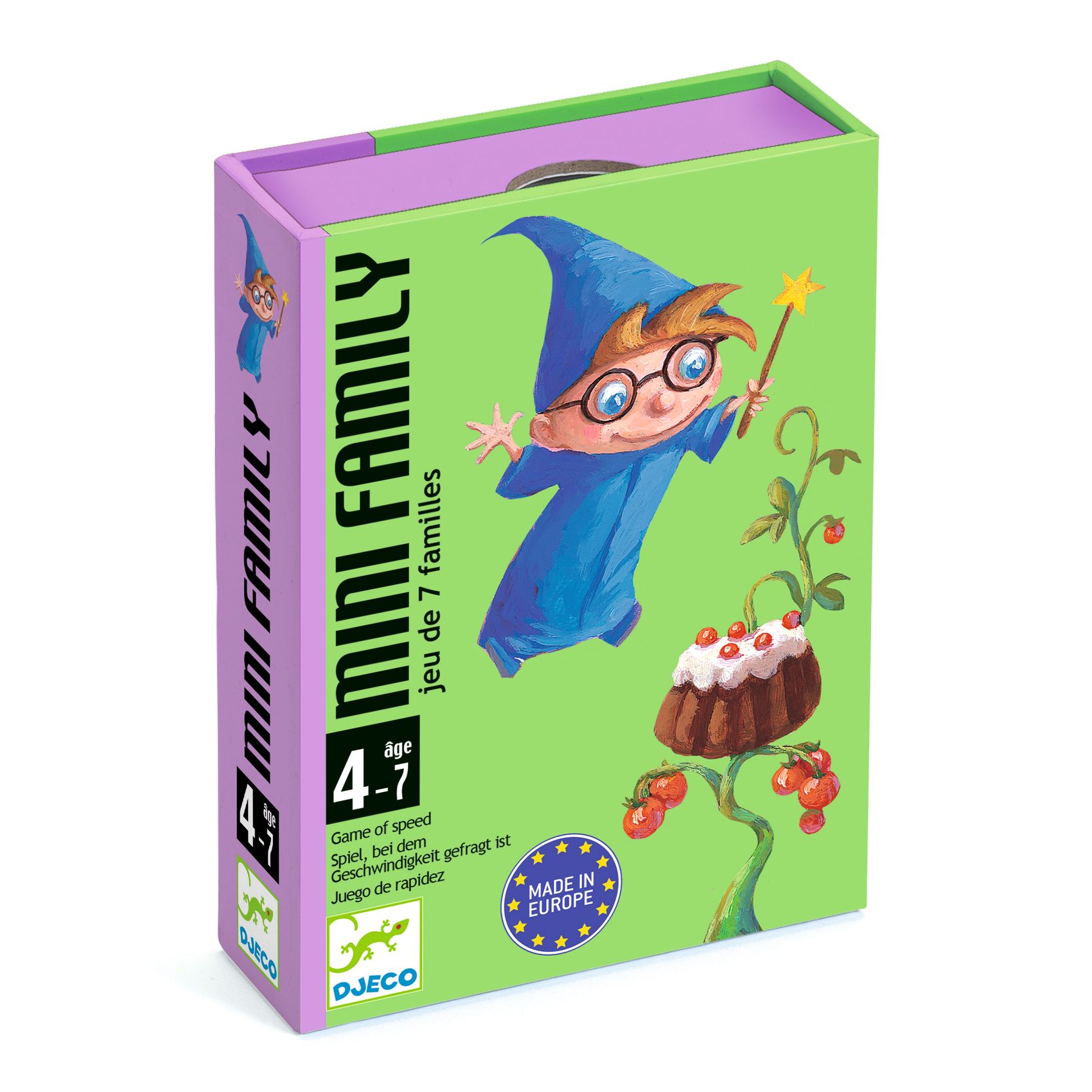 Mini Family van Djeco is een gezellig kaartspelletje van Djeco voor de kleinsten. Het is gebaseerd op het klassieke kwartetspel maar bij dit spel moet je bijzondere families verenigen zoals tovenaars, spoken, ridders, ... .