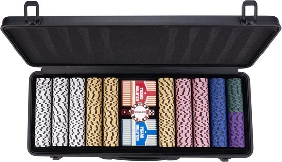 Pokerset in zwarte koffer, 500 chips met waarde