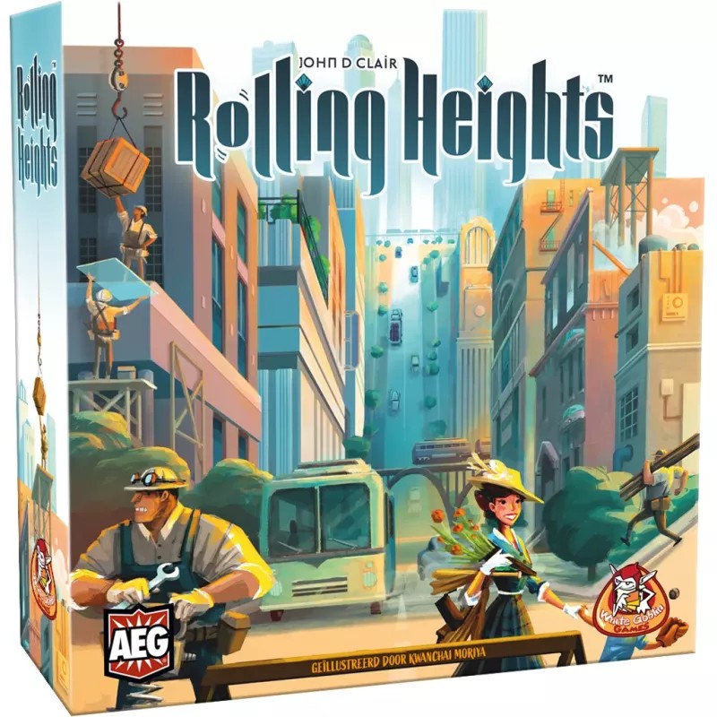 In Rolling Heights rollen spelers arbeiders in de vorm van meeples. Staande meeples werken die dag hard en leveren speciale acties en bouwmaterialen, terwijl liggende meeples niets opleveren. Je kunt altijd je geluk op de proef stellen voor betere worpen, maar je kunt daarmee ook waardevolle materialen verliezen die je nodig hebt om nieuwe gebouwen te bouwen. Door gebouwen te voltooien, krijg je prestige en nieuwe arbeiders om je te helpen nog grotere gebouwen te bouwen, waaronder wolkenkrabbers.