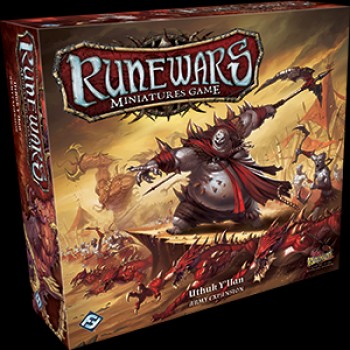 A new evil force enters the battle for Terrinoth with the Uthuk Y'llan Army Exansion for Runewars Miniatures Game. The army of the Locust Horde includes four new demonic units with the Uthuk Berserks, Flesh Rippers, Spine Threshers, and their dark hero Ravos the Everhungry. In addition to twenty-two customizable figurines, the expansion includes tokens, terrain pieces and cards, and twelve upgrade cards.