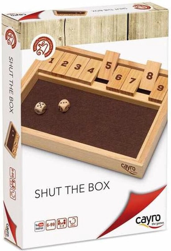 Een dobbel- en kansspel voor 2 of meer spelers. Het doel van het spel is om zoveel mogelijk of alle cijfers op het speelveld dicht te klappen. De speler die erin slaagt om alle cijfers om te draaien, is de winnaar! Als geen enkel cijfer dichtgeklapt wordt, worden deze cijfers samen geteld en wint de speler met de minste punten.