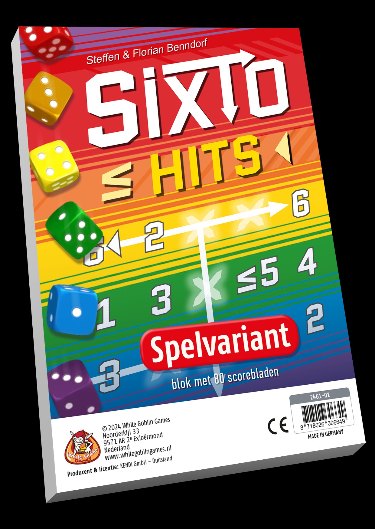 Nóg 2 nieuwe spelvarianten voor het populaire dobbelspel Sixto. Na Sixto Cross is er nu Sixto Hits. De spelregels van Sixto veranderen niet, maar ze voegen wel extra uitdaging toe en nieuwe manieren om punten te scoren. Voor beide varianten veranderen de regels van Sixto niet, maar ze voegen wel een extra uitdaging toe aan het standaard spel.