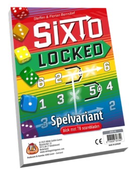 Sixto Locked speel je met 1 uitzondering op de standaardregels. In elke kleurrij zijn er 3 slotvelden die je niet mag overslaan. Deze velden moeten aangekruist worden, voordat je de velden er rechts van mag aankruisen. Bevat 78 bladen.