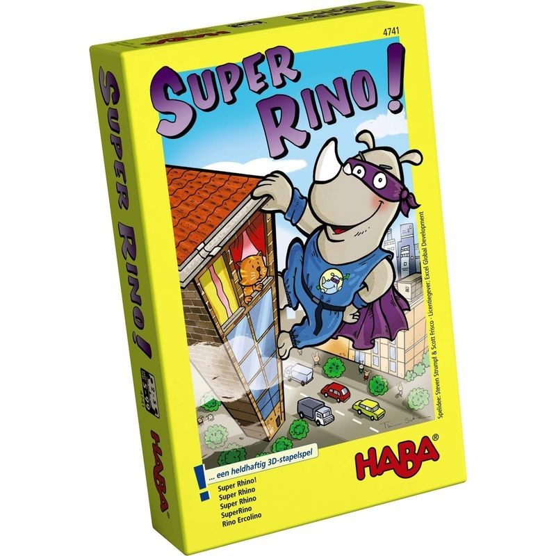 Jaaa!!! Rhino Hero is weer op weg. De beestachtige superheld klimt zonder vrees tegen de hoogste huizen op om naar boeven en schurken uit te kijken. Hij is zo sterk als een leeuw en zo sluw als een vos, maar ook zo zwaar als een neushoorn. Dat brengt ook de sterkste flatgebouwen aan het wankelen. Kunnen jullieRhino Hero helpen om zijn wankele missie te vervullen en de wolkenkrabber zo stevig mogelijk op te bouwen?