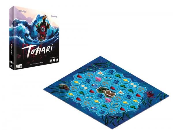 The small island of Kuchinoshima has been hit by a terrible storm, leaving the village with only a single fishing boat. Each hoping to prove themselves the village’s best fisherman, 2-4 players take turns moving the boat marker around the island, collecting any fish tiles they land upon. At the end of the day, the player with the best haul wins, but there’s a twist – with 3 or 4 players, each player’s score is added to the player to their right’s score before determining the winner!