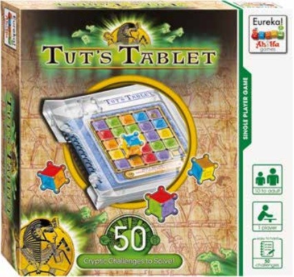 Select a challenge from the booklet and slide it into Tut's Tablet. Place the Cryptic Cube on the starting square matching the colors of the cube top and sides as indicated. To find the secret path to Tut's treasure, you must roll the cryptic cube from square to square always matching the color on the top of the cube with the color on the square below it. When you reach the square with Tut's coin and both colors match, you've solved the challenge.