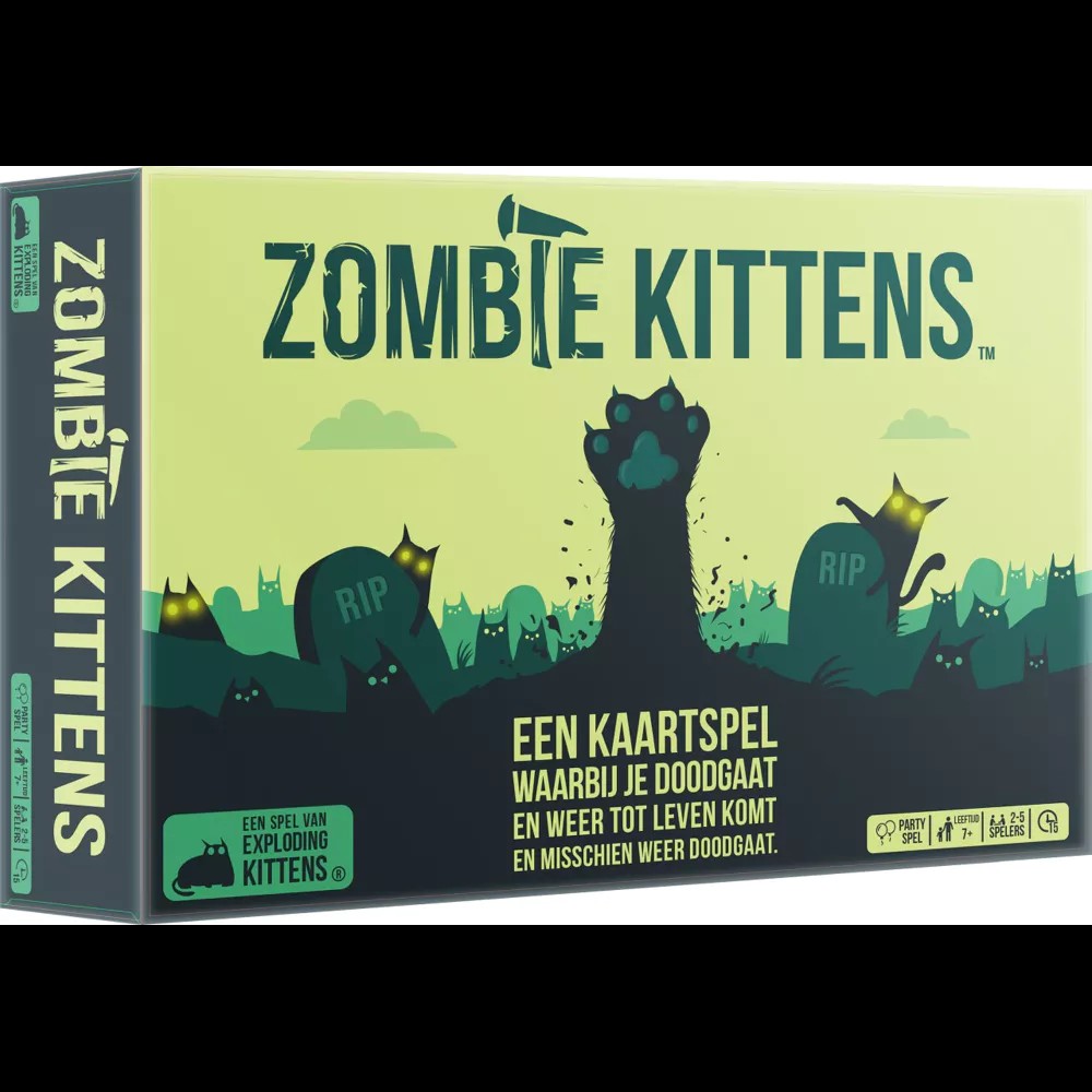 Zombie Kittens is nog steeds de zeer strategische, door katten aangedreven versie van Russisch Roulette waar je van houdt, maar het introduceert een gloednieuw kaartspel zodat je spel niet eindigt alleen omdat je ontploft. Alleen levende spelers kunnen het spel winnen, maar dode spelers mogen nu de kaarten in hun hand houden als ze ontploffen. Ze mogen ook bepaalde kaarten uitspelen om de levende spelers te kwellen. En ze kunnen zelfs terugkomen uit de dood om het spel te winnen. Zombie Kittens bevat nieuwe kunst op elke kaart in het spel en nieuwe kaartmechanismen die niemand ooit eerder heeft gezien.