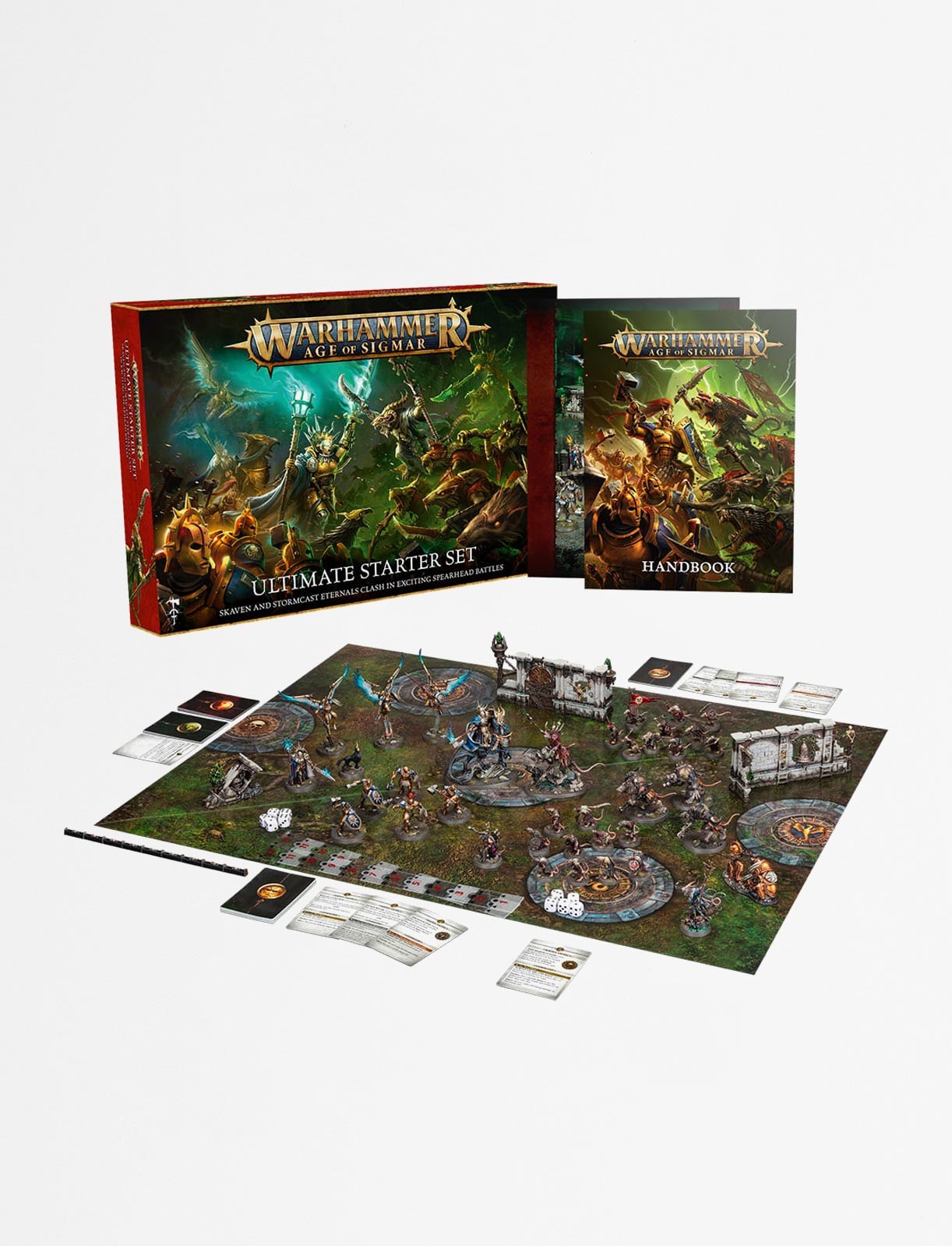 Experience the complete Warhammer Age of Sigmar with the Ultimate Starter Set, featuring two full Spearhead armies and all the rules and accessories needed to play this fast-paced, tactical game format. The Vigilant Brotherhood, led by a Lord-Vigilant on Gryph-stalker, joins the standard starter set units, while the Gnawfeast Clawpack includes a Clawlord on Gnaw-beast.