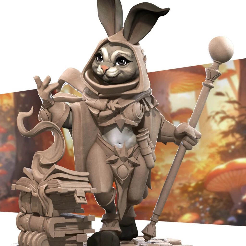 A curious mind and nimble hands make the Harengon Wizard a formidable spellcaster. With spellbook in hand, they study the arcane arts and cast powerful spells, showing that even the smallest creature can harness the greatest magic.