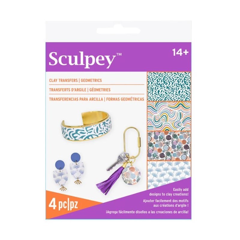 Tools Clay Transfers Geometric Sculpey (AS2054) is een kleitransfer van hoge kwaliteit om ingewikkelde patronen en levendige kleuren aan kleiprojecten toe te voegen.De set bevat 4 vellen met patronen:...