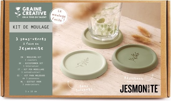 Met deze set maak je unieke Jesmonite onderzetters met bladmotief. Jesmonite is een milieuvriendelijke watergedragen hars en wordt veel gebruikt voor het gieten van prachtige en unieke projecten, van sieraden tot schaaltjes, van tafelbladen tot onderzetters. Het is veilig in gebruik en bevat geen schadelijke chemicaliën. Deze kit bevat alles wat je nodig hebt om met Jesmonite te beginnen, inclusief pigmenten, herbruikbare siliconen vormen en stapsgewijze instructies die je door alle stappen leiden.