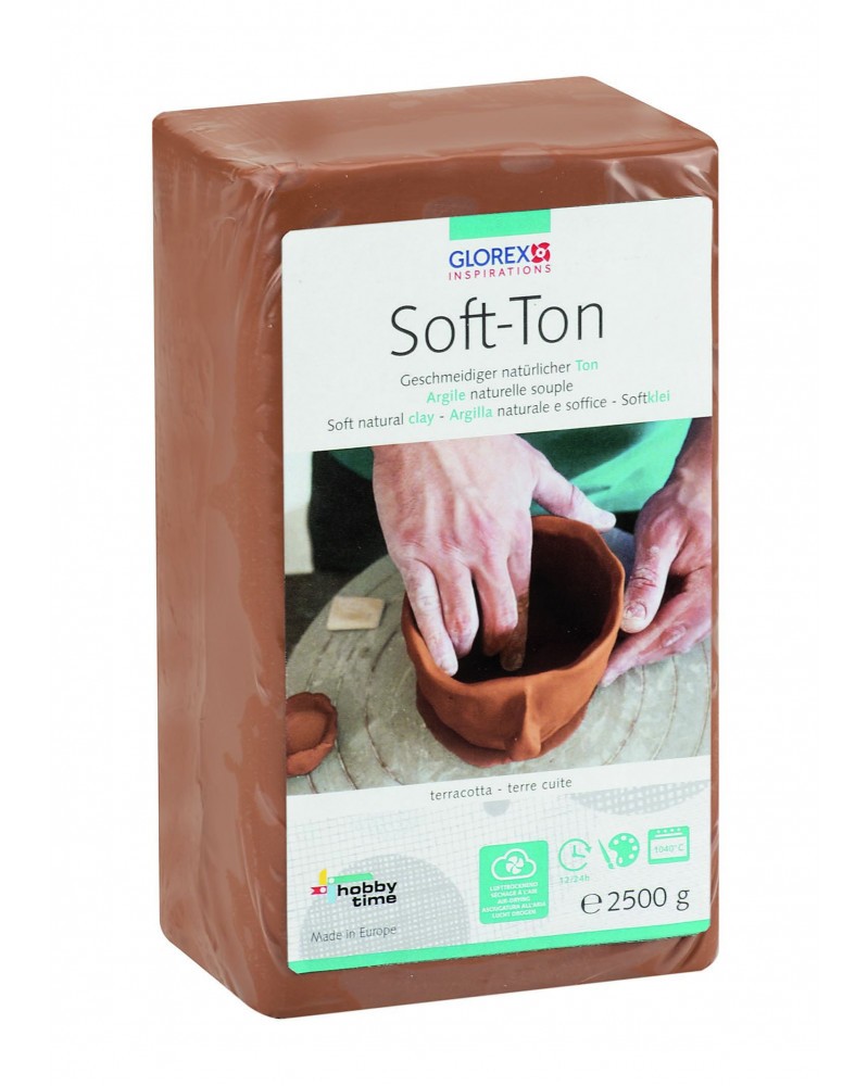 Soft-Ton is een natuurlijke, zeer zachte en soepele klei. Droogt aan de lucht en is extreem sterk. Uitgeharde modellen kunnen individeel worden beschilderd. Soft-Ton is luchtdrogend, maar kan ook bij 1040-1200 °C in de oven worden gebakken.