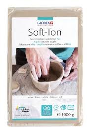 Soft-Ton is een natuurlijke, zeer zachte en soepele klei. Droogt aan de lucht en is extreem sterk. Uitgeharde modellen kunnen individeel worden beschilderd. Soft-Ton is luchtdrogend, maar kan ook bij 1040-1200 °C in de oven worden gebakken.