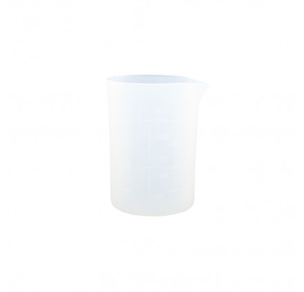 Handige maatbeker van flexibel silicone met een inhoud van 100 milliliter voor het mengen van bijvoorbeeld Jesmonite, gips of epoxy resin.