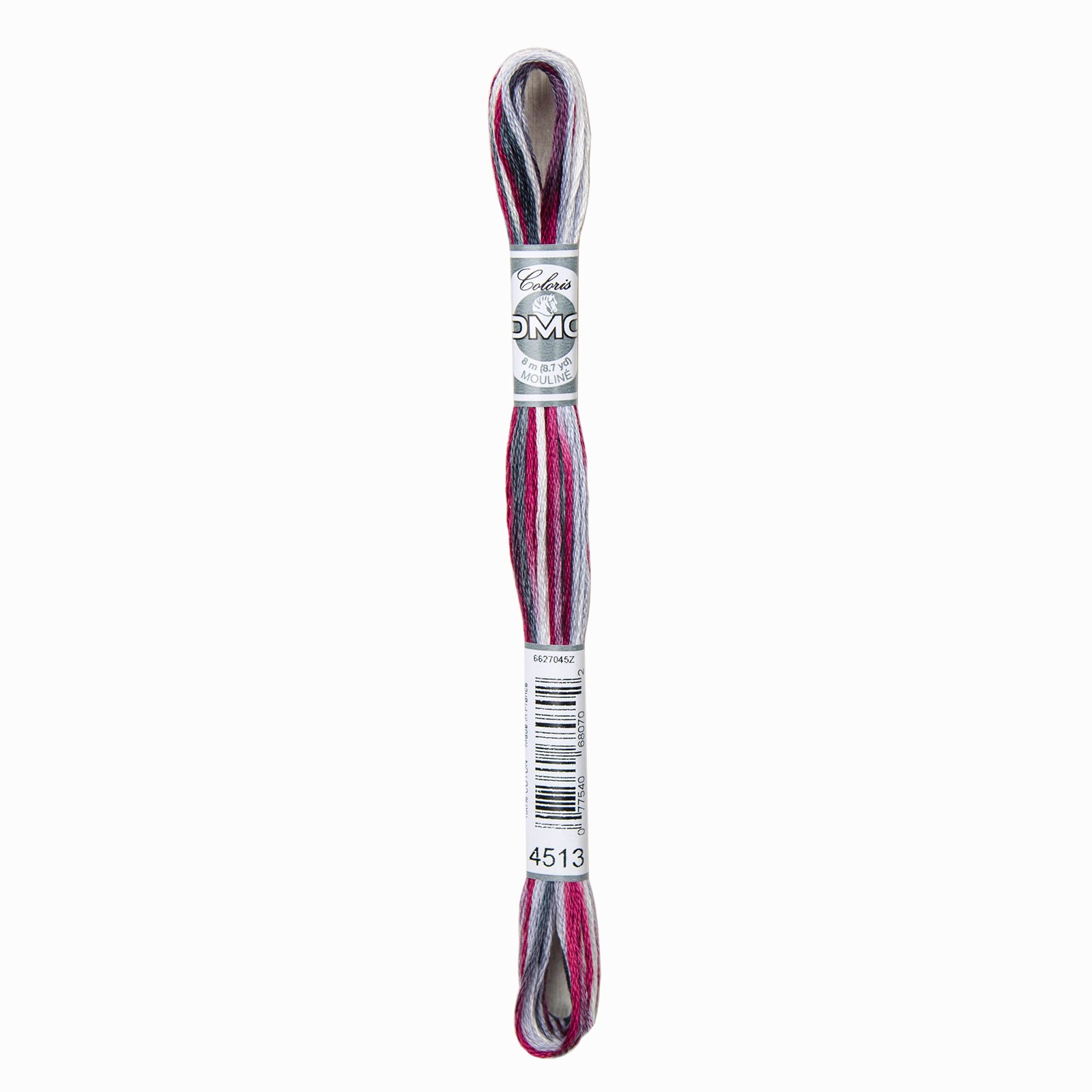 DMC Mouline Coloris is een 6 draads garen. Dit garen heeft vier kleuren in één streng, en is 8 meter lang.