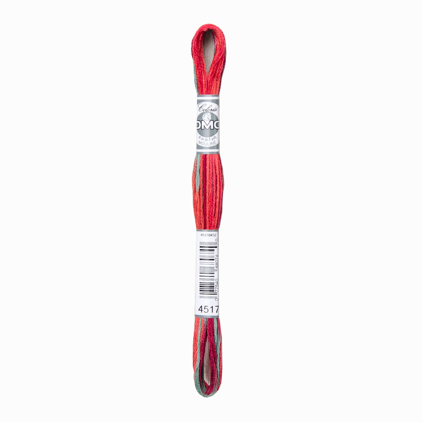 DMC Mouline Coloris is een 6 draads garen. Dit garen heeft vier kleuren in één streng, en is 8 meter lang.