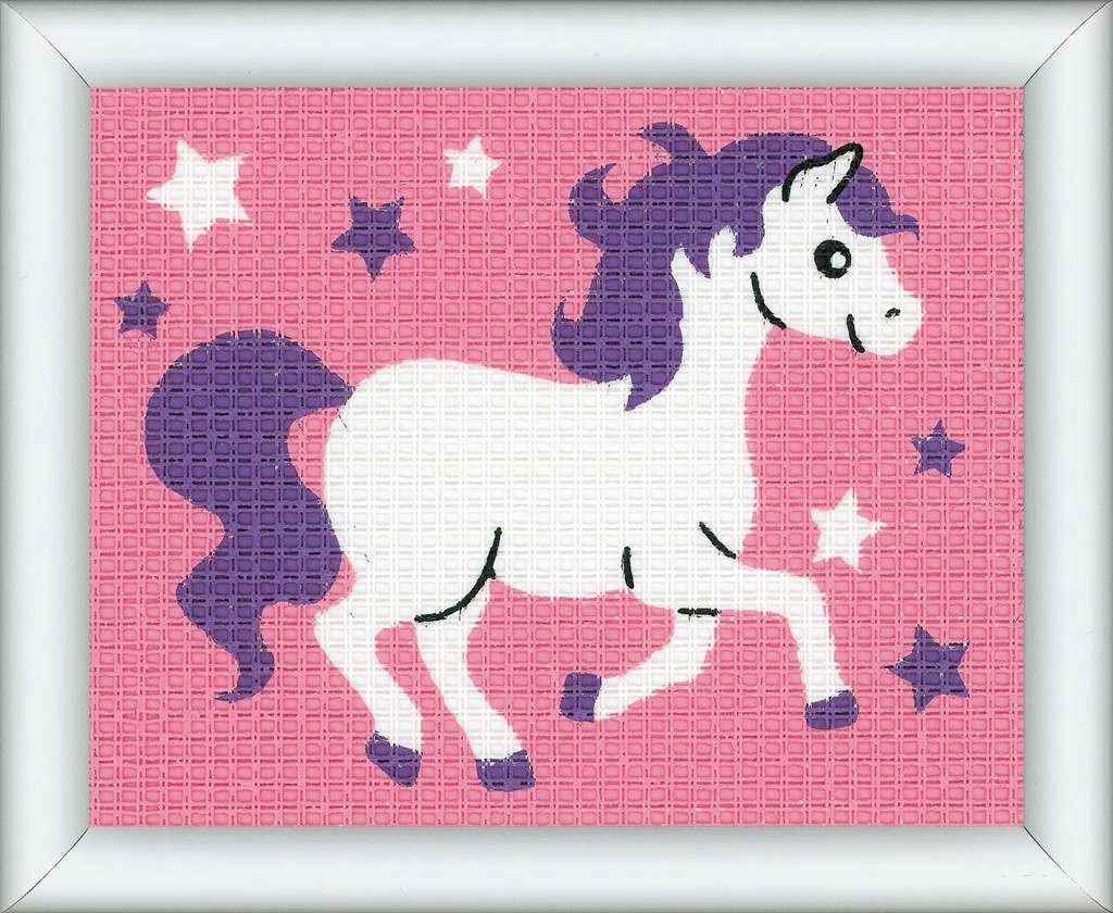 Stramienen kit, Bedrukt grof stramien: 100% katoen, Dik garen: 100% acryl, 26 steken/10 cm, Werkwijze in 8 talen, Naald, Foto, ca. 12.5 x 16 cm / 5" x 6.4", Leeftijdscategorie: vanaf 6 jaar, Steken: Halve kruissteek, Aantal kleuren: 4, Moeilijkheidsgraad: Zeer gemakkelijk,