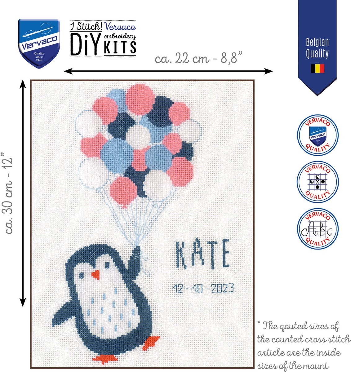De kit bevat hoogwaardige materialen: Een Zweigart borduurstof van 100% katoen, (stramien: 5,4 steken/cm), DMC garen van 100% katoen, een garenkaartje, werkwijze in 8 talen, een duidelijk vergroot dia...
