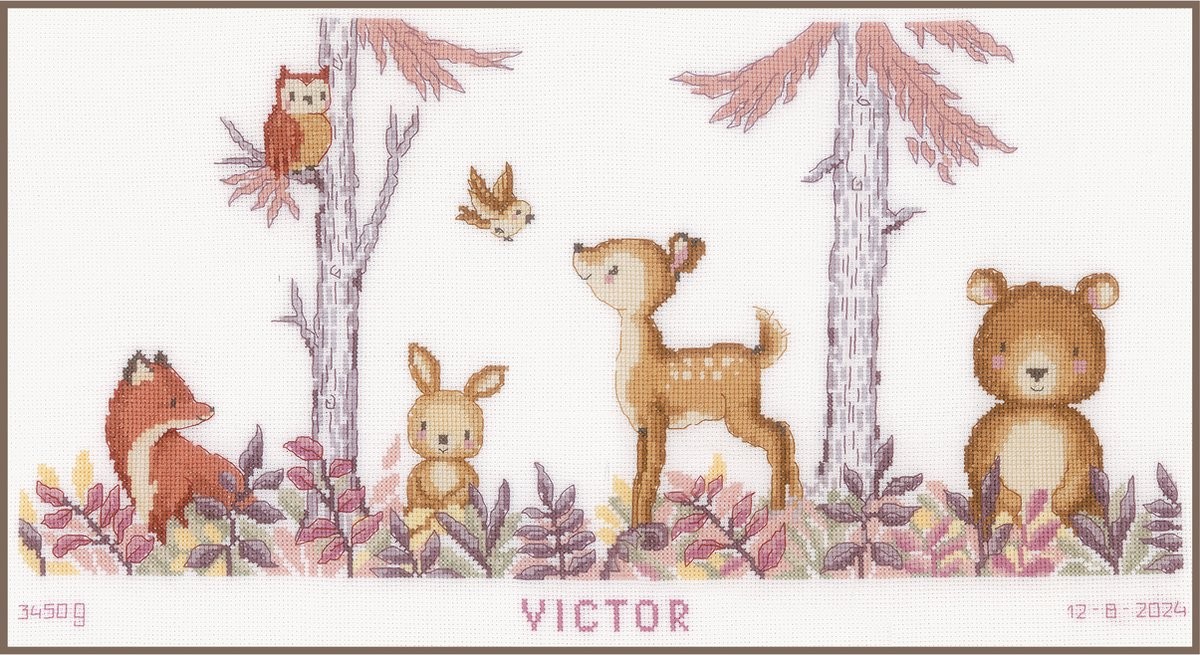 Vervaco borduurpakket geboortetegel in het bos PN-0201397 telpatroon
