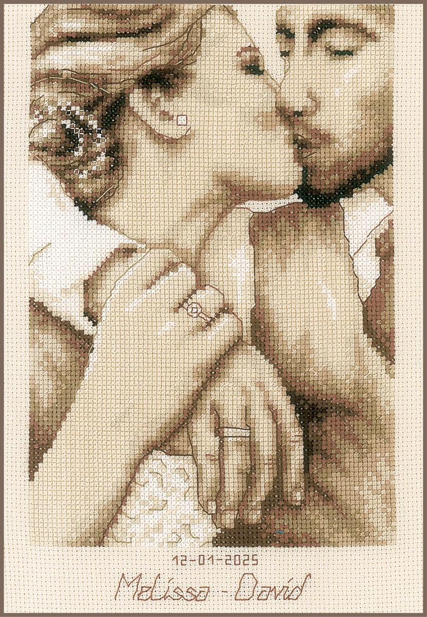 Vervaco borduurpakket trouwtegel liefdevolle kus PN-0202626 Sepia stijl