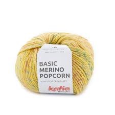 Katia Basic Merino Popcorn is een mix van Katia Basic Merino met een subtiel fantasie-effect dat wordt bereikt met een natuurlijk of veelkleurig flamékatoenen garen. Ideaal voor kledingstukken met een vleugje stijl voor het hele gezin. Het garen is vooral geschikt voor het maken van zachte accessoires en kleding voor baby's. Geef je creativiteit een boost en brei betoverende projecten met Katia Basic Merino Popcorn!