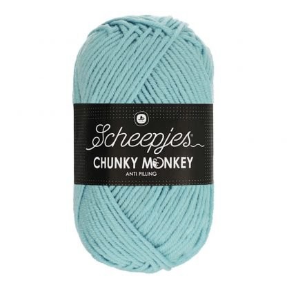 Creëer een speels effect met Scheepjes Chunky Monkey. Dit garen heeft een mooie, dikke textuur en is gemaakt van een superieure kwaliteit acryl, die mooi glad blijft en niet pilt. Chunky Monkey is verkrijgbaar in een palet van 93 kleuren die naadloos aansluiten bij het populaire en dunnere Scheepjes Colour Crafter. Ideaal dus om die twee garens te combineren en te experimenteren met verschillende texturen.