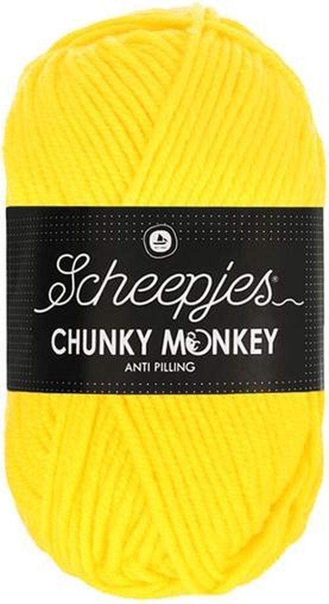 De aanbevolen naalddikte 5.00mm. Een bol Scheepjes Chunky Monkey weegt 100 gram en heeft een looplengte van 116 meter (garendikte Aran). Dit assortiment bestaat uit 93 kleuren.
